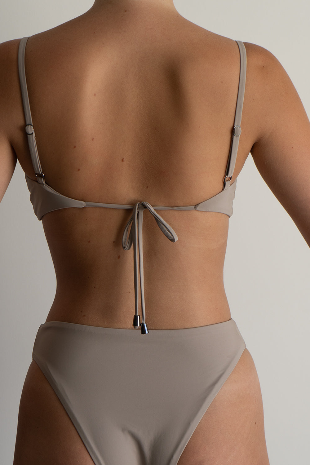 A familiar and effortless crop-style top with a curved neckline for a naturally flattering shape. Designed for minimal tan lines with string ties and adjustable straps, ensuring a secure fit and an elegant open-back finish. Crafted with seamless edges and chrome and nickel free hardware that won't heat up in the sun.